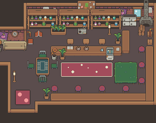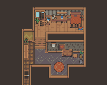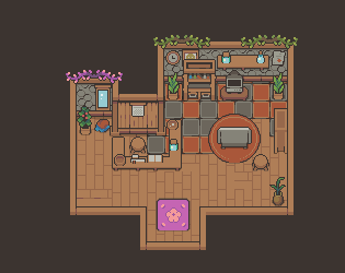 Furniture, flooring, walls, various miscellaneous items, carpets, plants